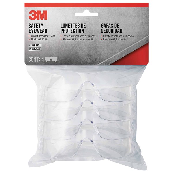 3M 90953 SAFETY SAFETY GLASSES CLEAR 4 PACK