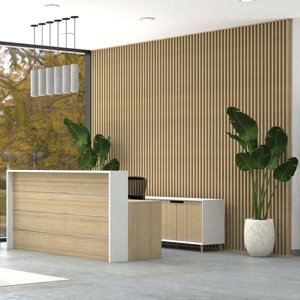 White carcass with Classic Oak Naturale hinged doors with scallop cut for handles