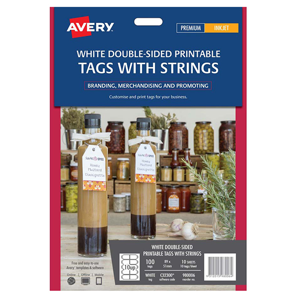 AVERY 980046 C32300 PRICING TAGS DOUBLE SIDED PRINTABLE 10UP W89 X L51MM 5 SHEETS WHITE