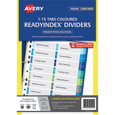 Avery dividers come with a customisable double column table of contents.