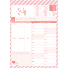 Special layout for priorities, goals and activities, monthly events, thoughts and memories