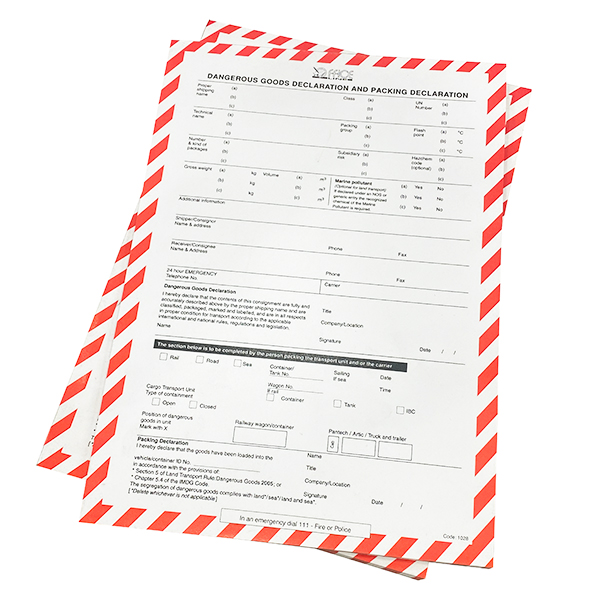 Dangerous goods declaration form.