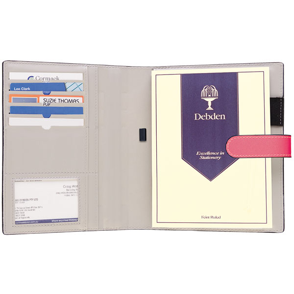 Includes A4 ruled pad, pen loop, and business card holders