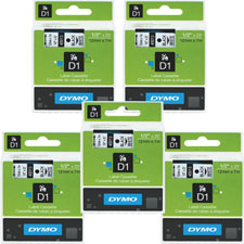 LABELLING TAPE BUNDLE DYMO D1 45013 BLACK ON WHITE W12MM X L7M PKT/ 4 + FREE NEWELL BRANDS BACK TO WO...