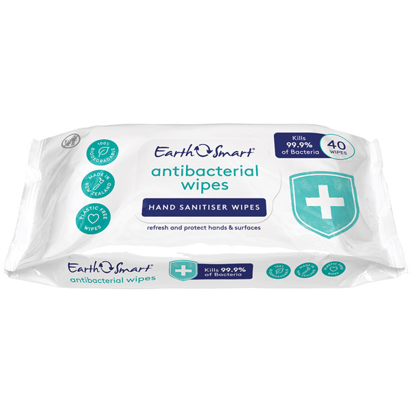 EARTH SMART ANTIBACTERIAL HAND SANITISER WIPES PACK 40