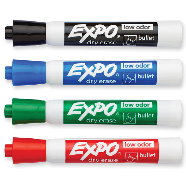 These Expo Dry Erase Markers with Bullet Tip feature non-toxic and low odour ink in assorted colours.