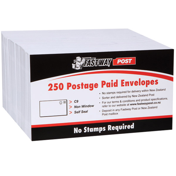 FASTWAY POST ENVELOPE POSTAGE INCLUDED PLAIN SELF SEAL 9S E13 W165 X L92MM WHITE PACK 250