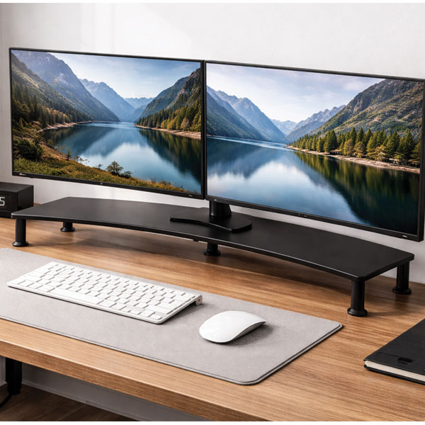 FLUTELINE DUAL MONITOR STAND HEIGHT ADJUSTABLE W900 X H250MM BLACK