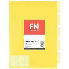 FM L-SHAPED POCKET 5 TAB A4 YELLOW PACK 5