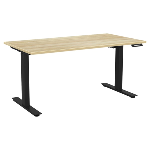KNIGHT AGILE HEIGHT ADJUSTABLE DESK ELECTRIC 2 STAGE W1500 X D800 X H680-1130MM BLACK FRAME ATLANTIC OAK TOP
