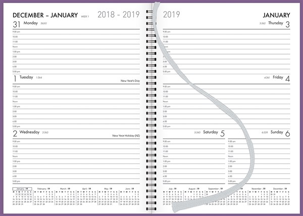MILFORD DIARY BOSTON A53 PURPLE WEEK TO VIEW WIRO ODD YEAR