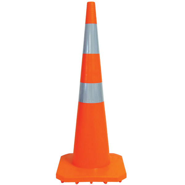 NIKKI ROAD CONE STUDDED BASE DUAL REFLECTIVE BANDS NARROW H900MM 4.5KG ORANGE