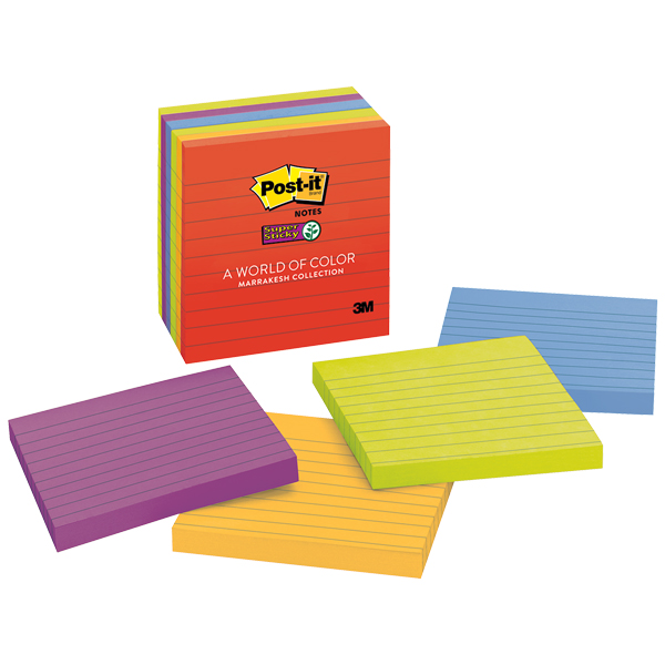 POST-IT 675-6SSAN SUPER STICKY LINED NOTES 98 X 98MM MARRAKESH PACK 6