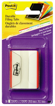 POST-IT 686F-50RD DURABLE FILING TABS LINED 50MM RED PACK 50