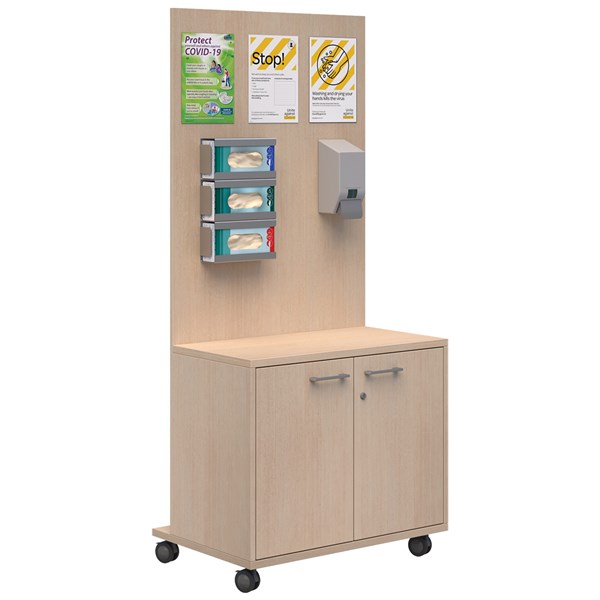 SANITIZATION STATION 1 LOCKING DOOR WITH BIN COMPARTMENT W800 X D550 X H1800MM REFINED OAK