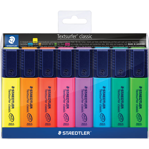 STAEDTLER 364 TEXTSURFER CLASSIC HIGHLIGHTER CHISEL ASSORTED PACK 8