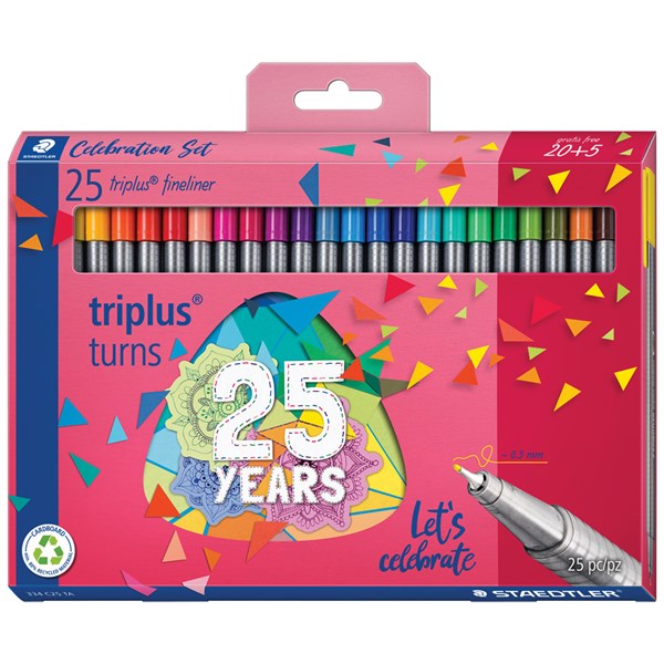 STAEDTLER Triplus Fineliner anniversary pack comes with 20 assorted colours with 5 Free assorted colours free