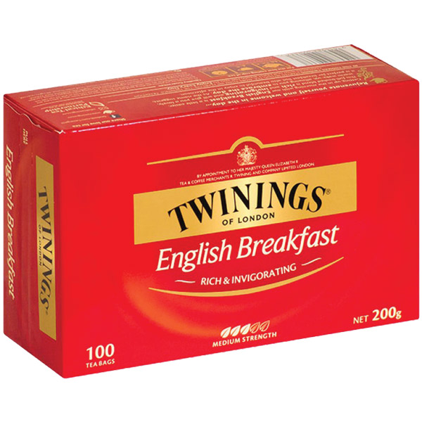 TWININGS TEA BAGS TAGLESS ENGLISH BREAKFAST BOX 100