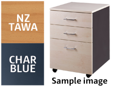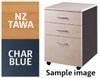 ZEALAND MOBILE 2 DRAWER 1 FILE LOCKABLE W465 X D500 X H660MM CHAR BLUE AND NZ TAWA